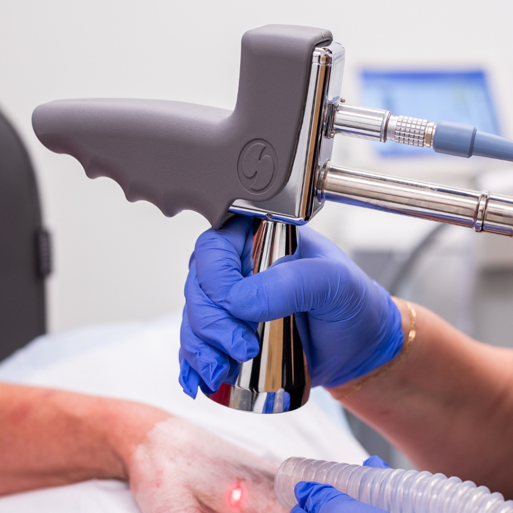 The topical numbing cream ensures that patients experience very little discomfort. While some report a sense of warmth or prickling — similar to the feeling of a sunburn — Sciton has also integrated a cooling mechanism into the device the alleviate these effects.